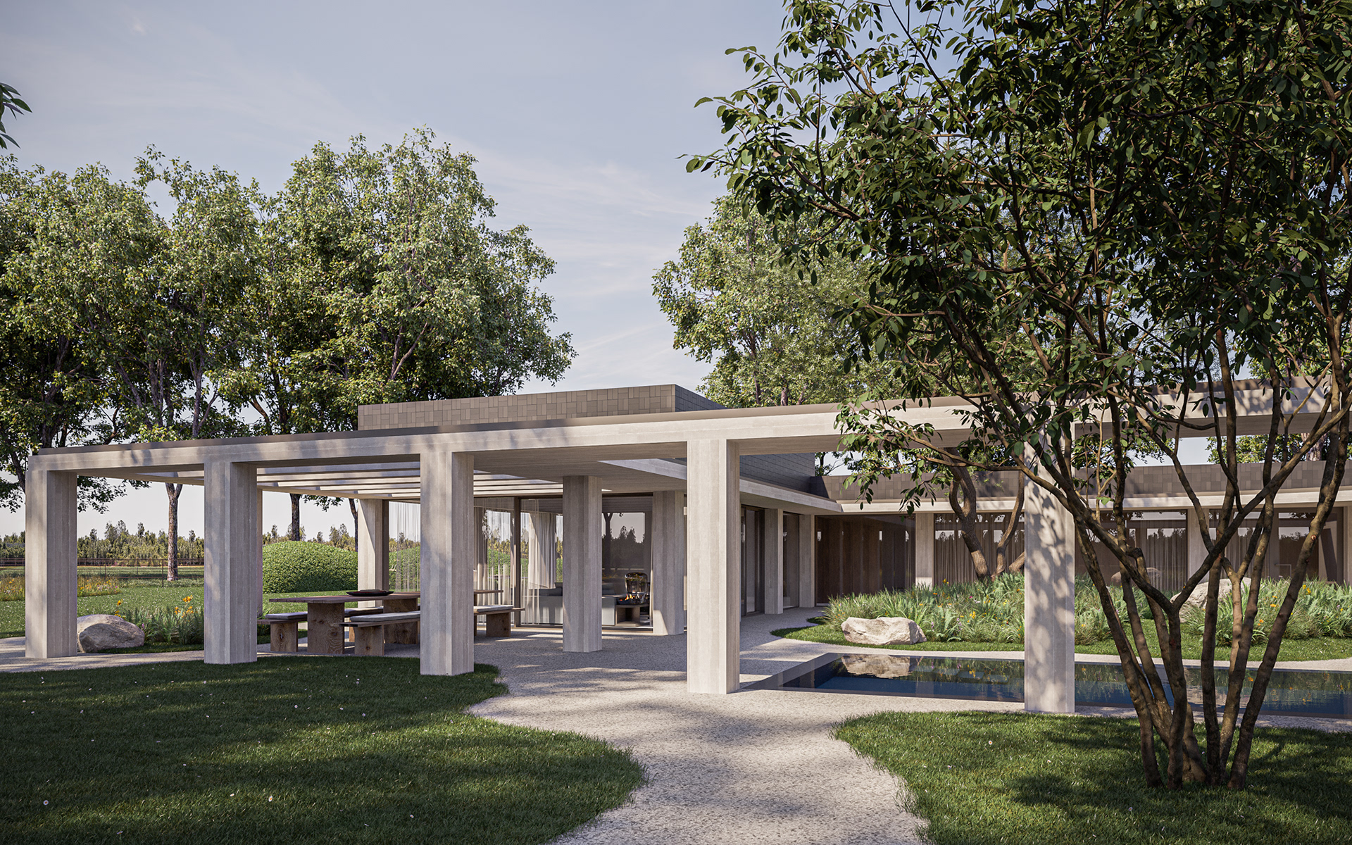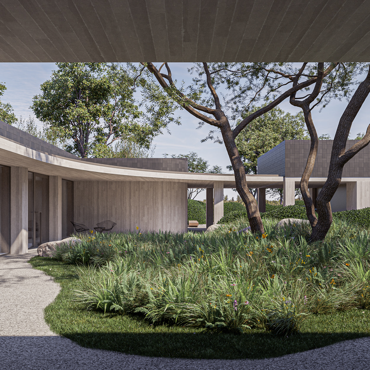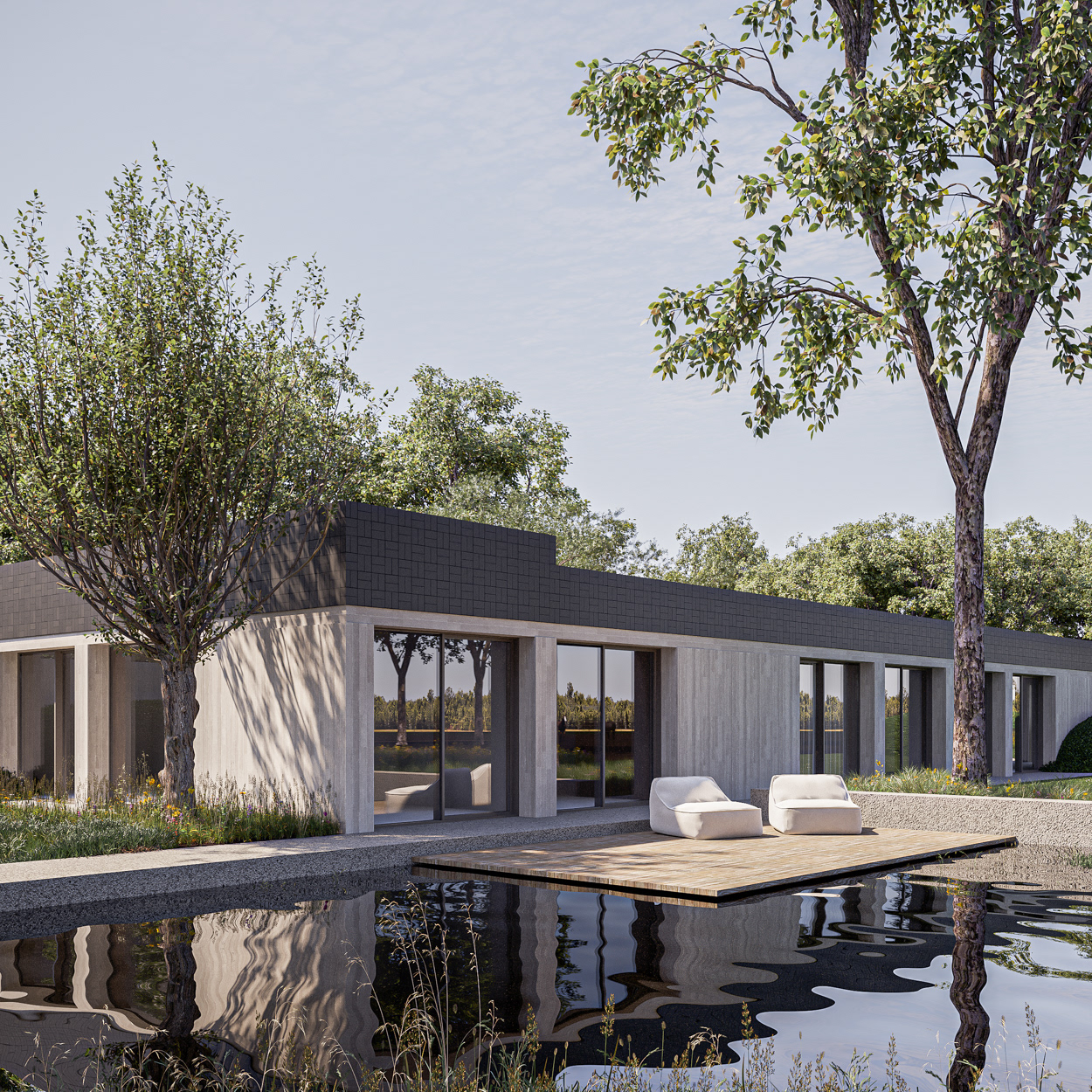 EXTERIEUR landschapstuin Studio Verde architectuur CAAN architecten visualisatie 3D-lab