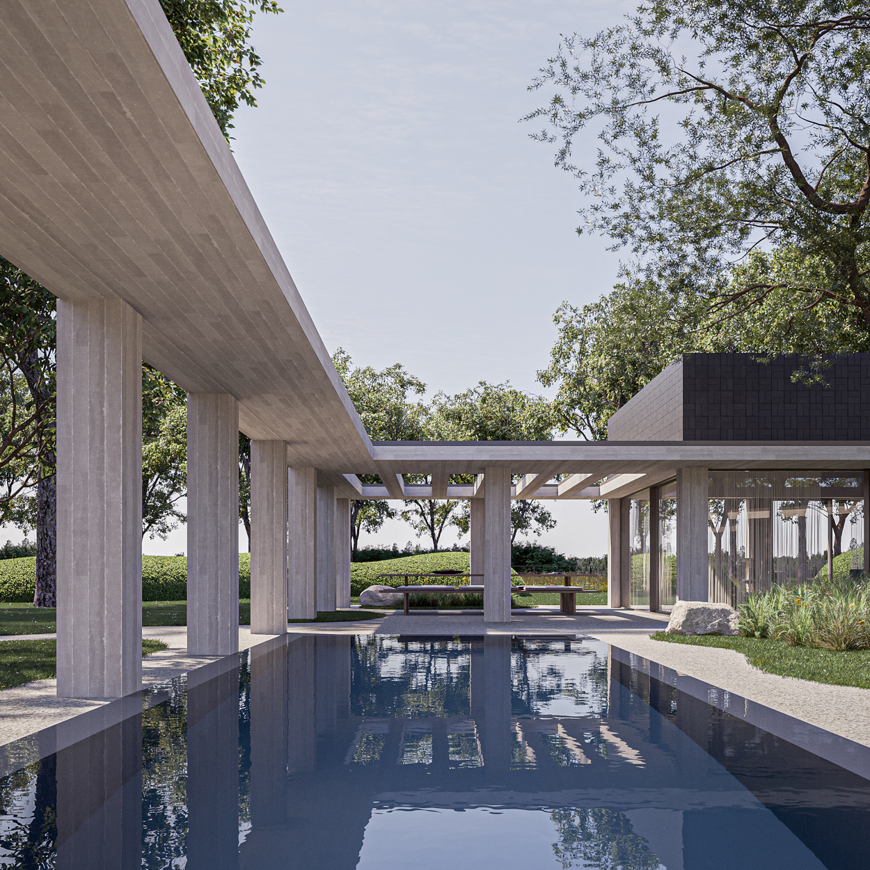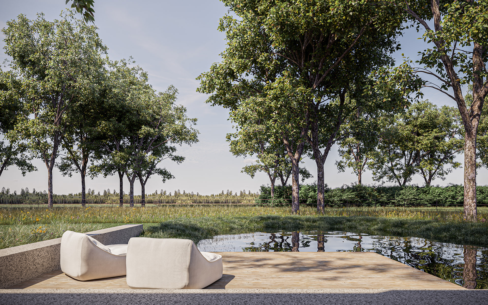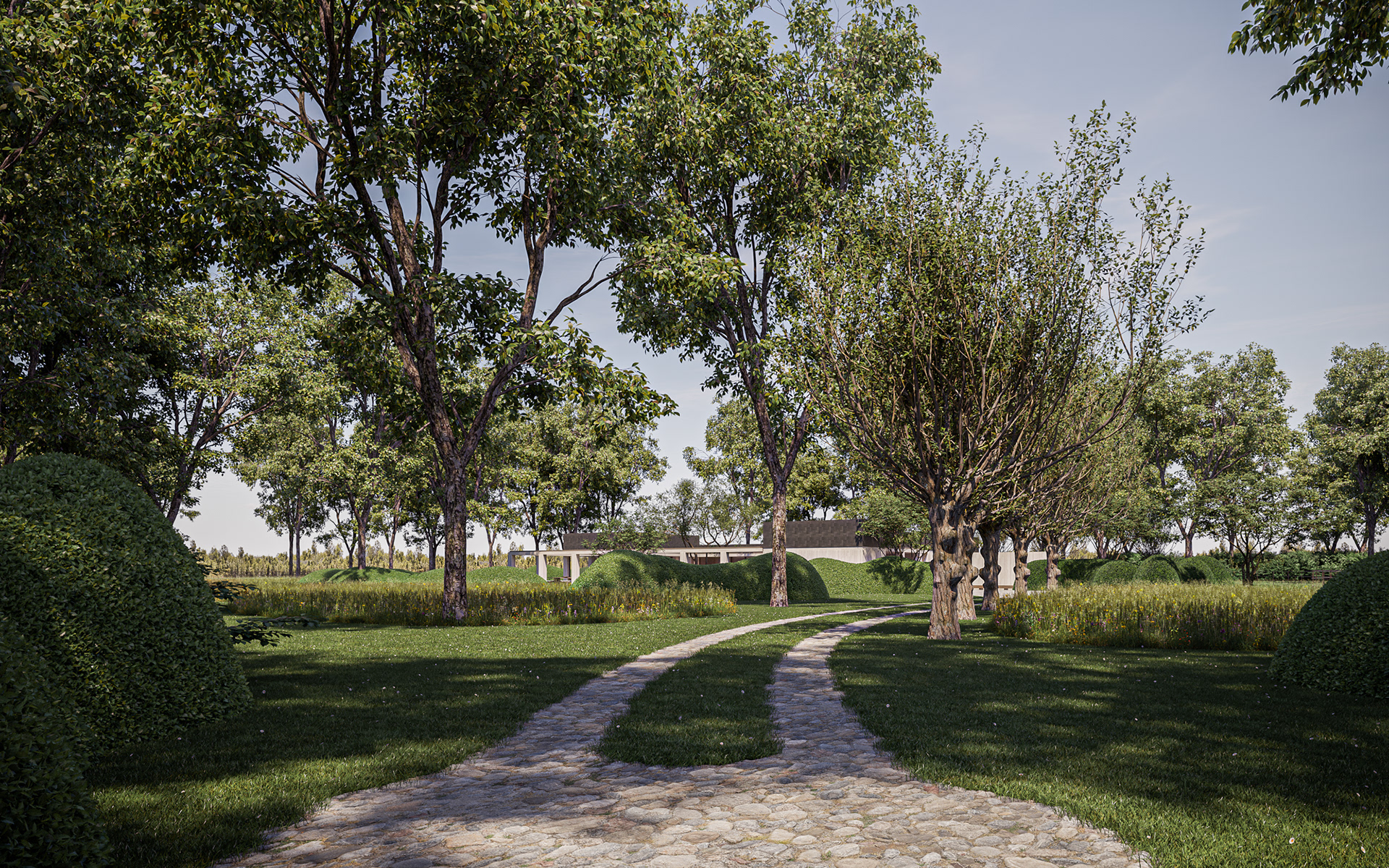 EXTERIEUR landschapstuin Studio Verde architectuur CAAN architecten visualisatie 3D-lab